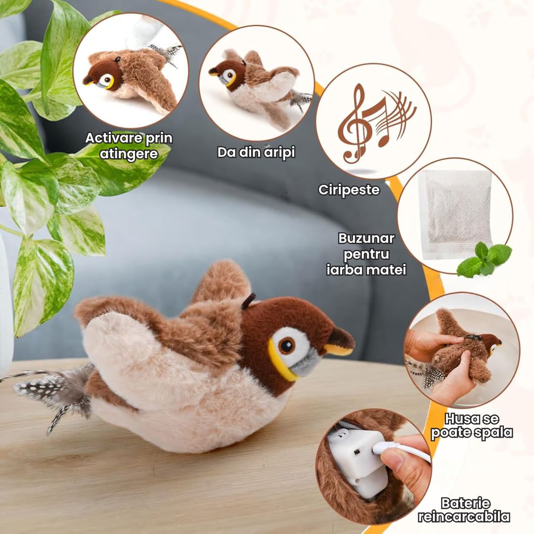 🐱 Joaca captivanta pentru pisica ta! Jucaria interactiva emite un ciripit autentic, atragand imediat atentia pisicii tale.