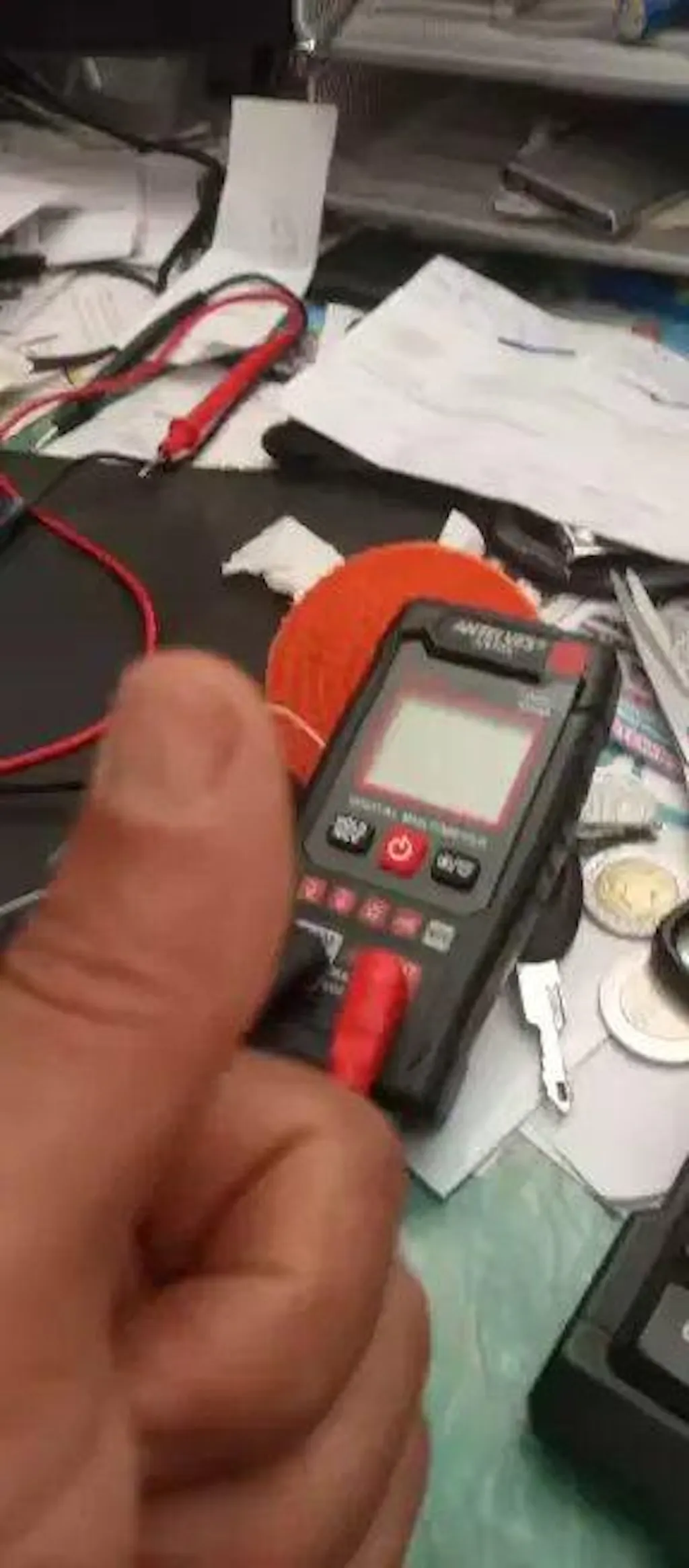 3️⃣ Porneste aparatul si atinge punctele de masurare – Multimetru Digital AN109 detecteaza automat si afiseaza rezultatul.